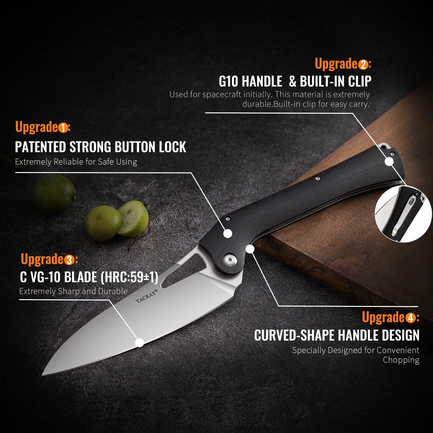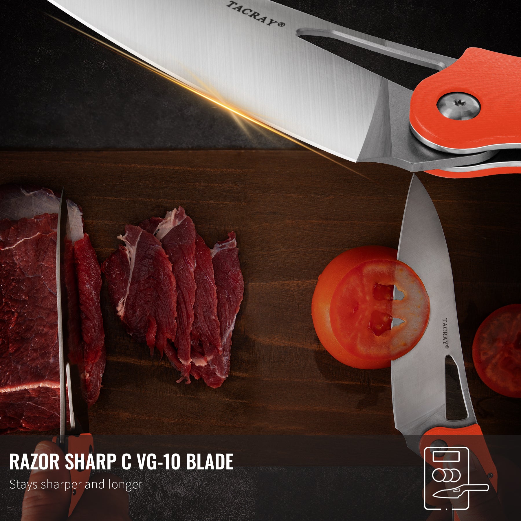 TACRAY Folding Kitchen Knife 10Cr15MoV Blade