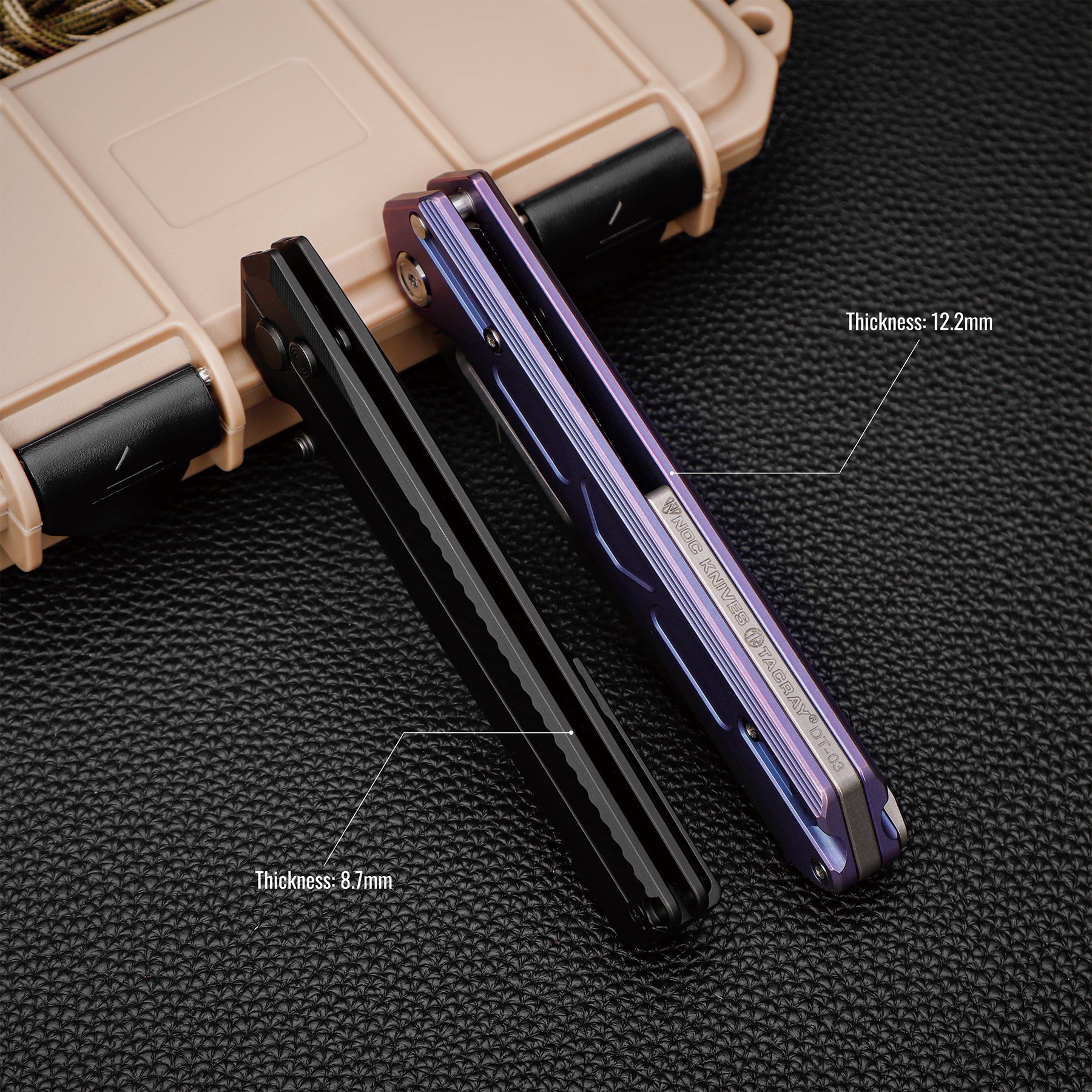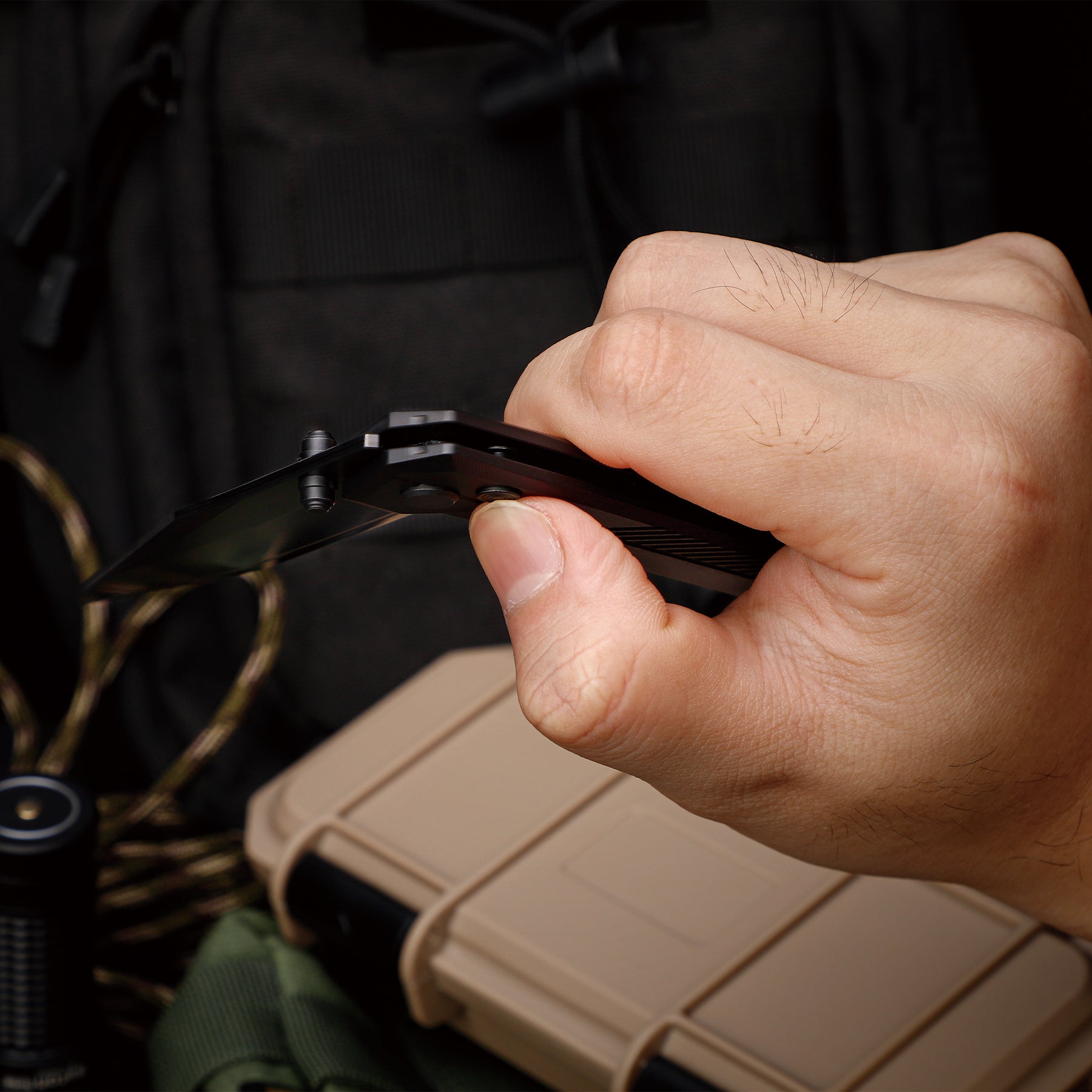 Compared to similarly sized titanium folders, the TIRAN’s handle is 15% thinner and its total weight 10% lighter, with a more compact frame and evenly balanced mass—resulting in a sleeker profile, superior grip comfort, and fatigue‑free all‑day carry. -