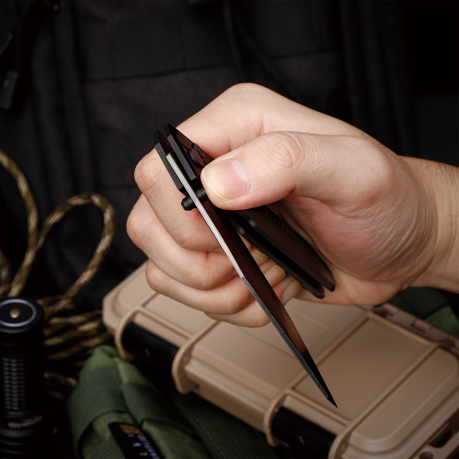 Merging the piercing power of Japanese Tanto tips, the multi-faceted sci-fi lines of stealth fighters, the bold angular folds of modern industrial architecture, and the structural elegance of origami—sculpting a next-level EDC folding knife with sharp, dynamic planes. -